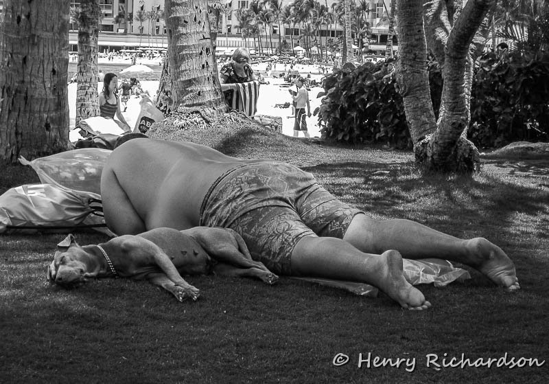 | A man and his faithful dog, Waikiki |