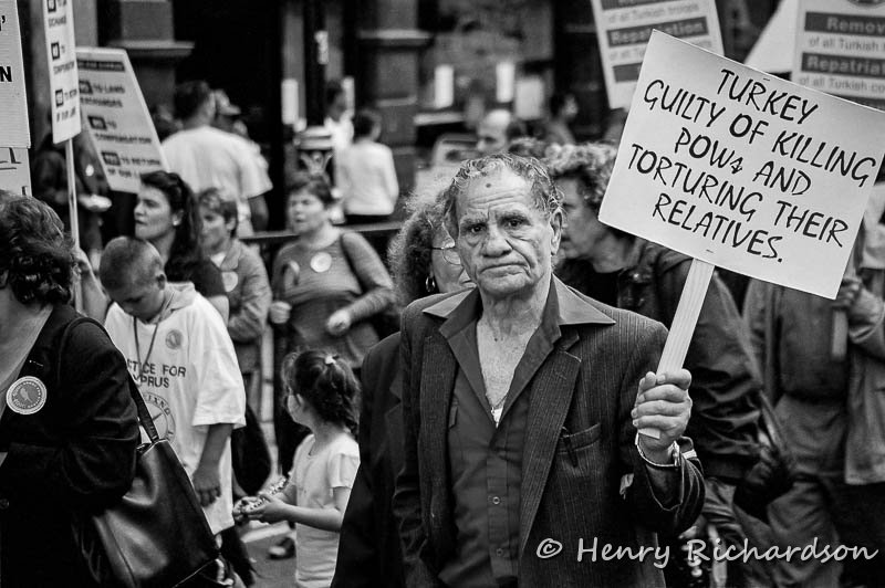 | Man protesting against Turkey, London, England, 2001 |