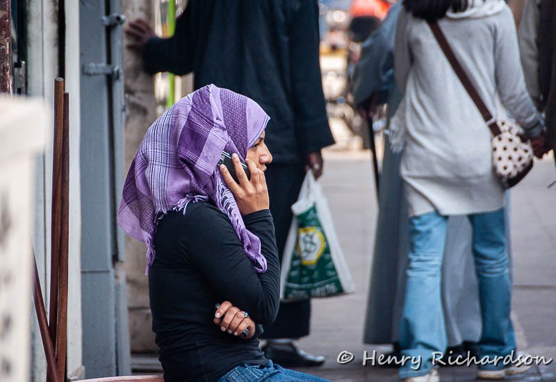 | Egyptian custom revealed: the phone goes *inside* the scarf |