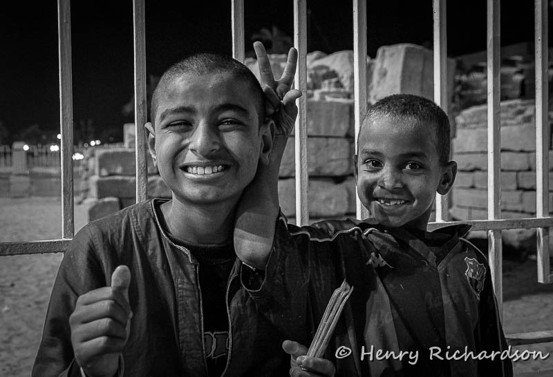 Boys outside Luxor Temple at night
