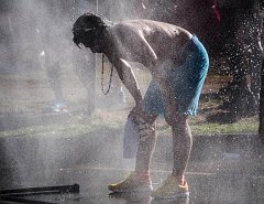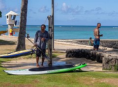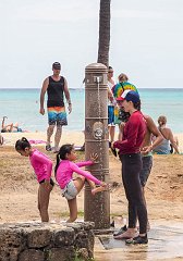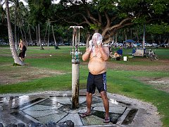 Showering after surfing, Kapiolani Park, 2012