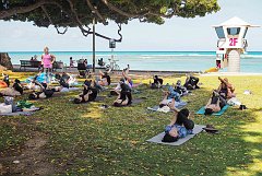 Morning yoga, Kapiolani Park, 2018