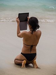 Taking photos at the beach with a big tablet, 2012