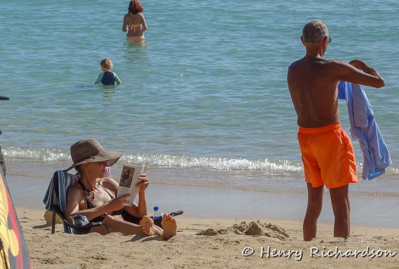 Reading at the beach, Waikiki, 2018