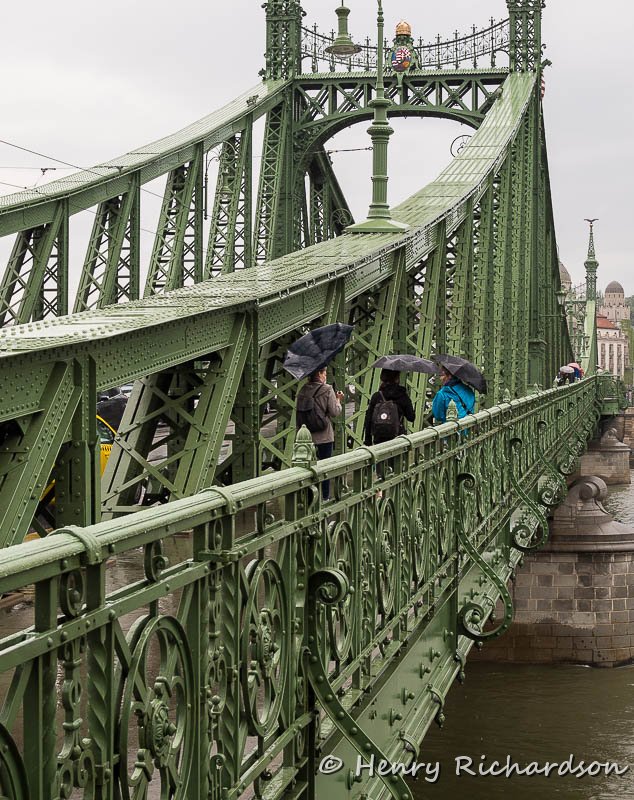 Wind reverses umbrella crossing the Liberty Bridge, Budapest, 2015 |