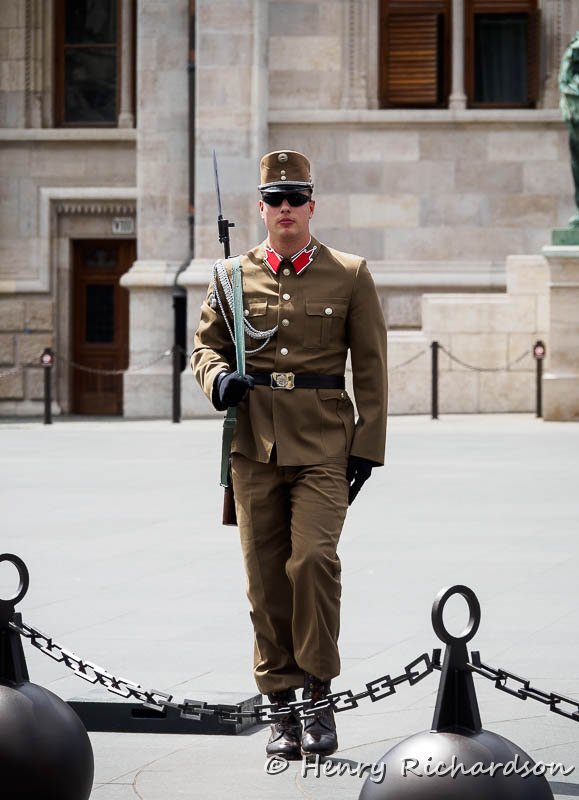 Guard in front of the Hungarian Parliament Building, Budapest, 2015 |