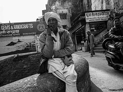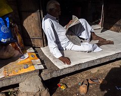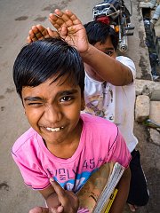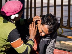 Having his ears cleaned, Rishikesh, 2015