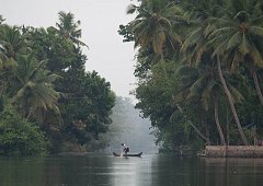 Fisherman on a foggy morning, Kerala Backwater, 2017