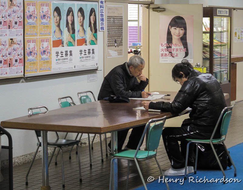 | Reading at the library on a cold day, Matsuyama, 2014 |
