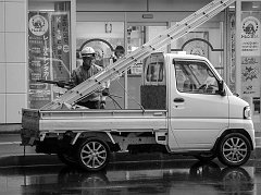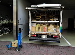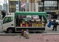Morning beer delivery in Susukino, Sapporo, 2015
