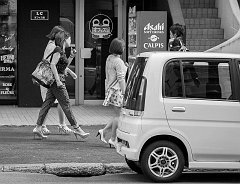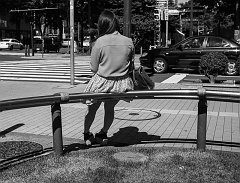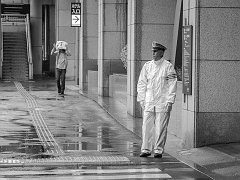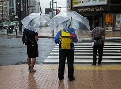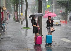 Young women on a hard rain day, Sapporo, 2015