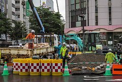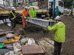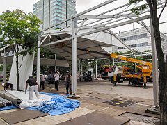 Tearing the tent down in Odori-koen, Sapporo, 2015