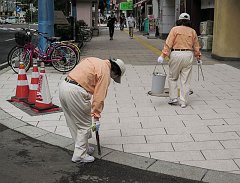 Picking up litter with long tongs, Sapporo, 2015