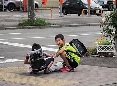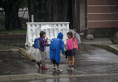 After school children on a hard rain day, Sapporo, 2015