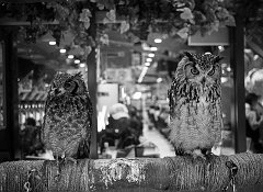 Owls at a pachinko parlor, Sapporo, 2015