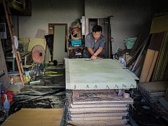 Man repairing tatami mats, Sapporo, 2015