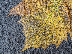 Trampled, fallen leaf on a rainy day, Sapporo, 2015