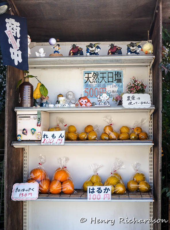 | Fruit for sale on the honor system, Matsuyama, 2017 |