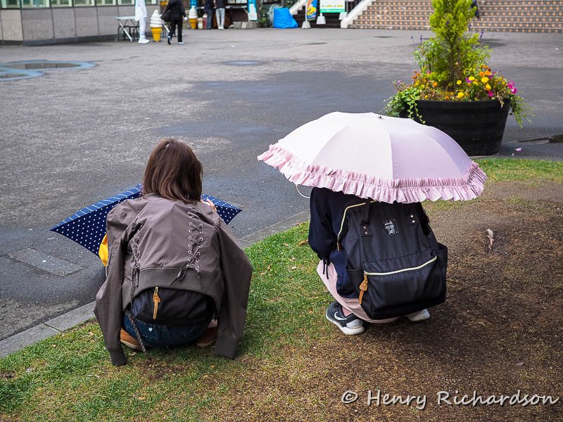| Squating to use smartphones, Odori-koen, Sapporo, 2017 |