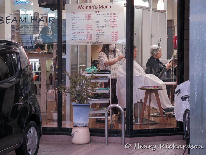 | Getting hair done on a rainy day, Matsuyama, 2021 |
