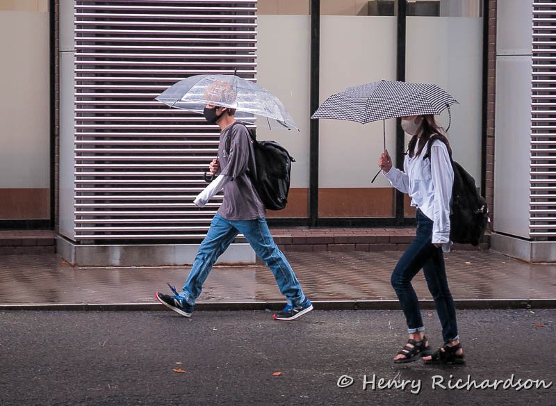 | University students going to class on a rainy day, Matsuyama, 2021 |