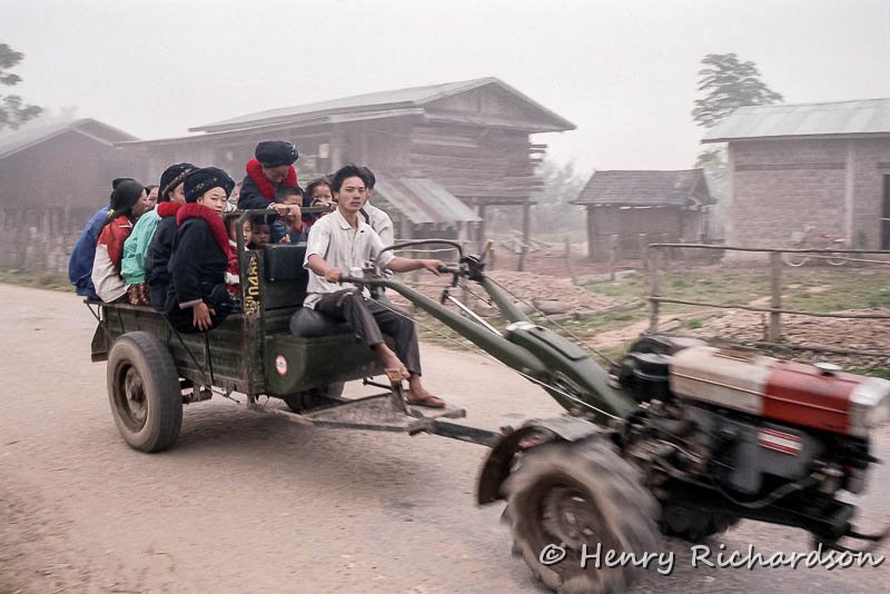 | Chinese tractor and workers on a foggy early morning in Muang Sing in the far north, 1998 |