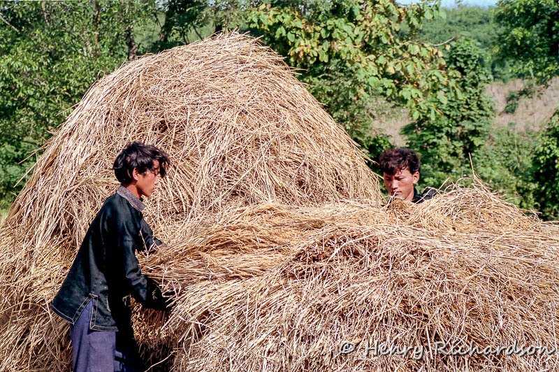 Rural villagers harvesting rice, 1998