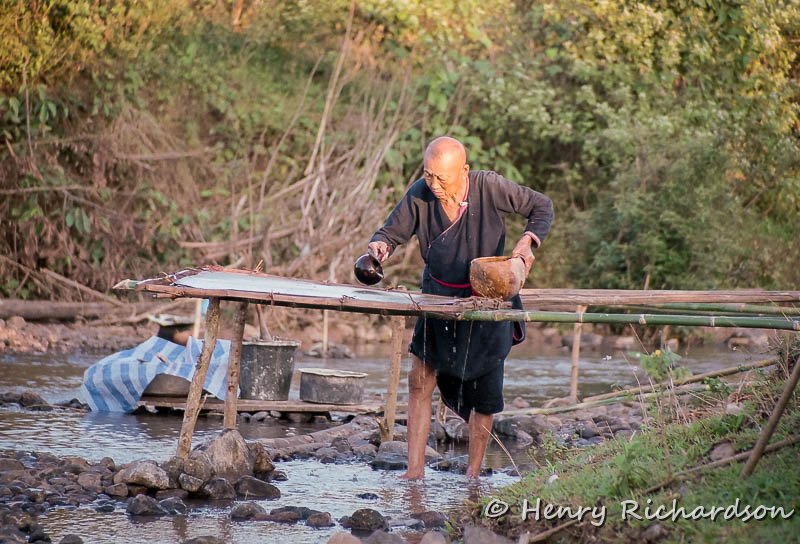 | Making paper outside a Laotai village early in the morning, 1998 |
