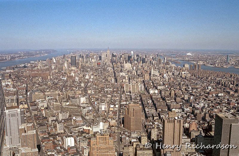Manhattan and Empire State Building from top of World Trade Center, 1989