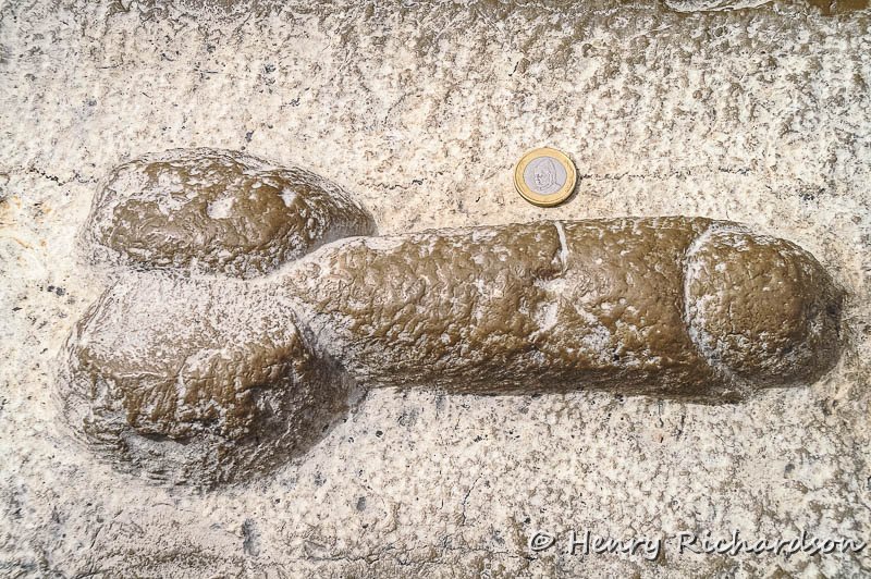 | Roman member at Volubilis -- This way to the orgy! Volubilis Roman ruins, 2006 |