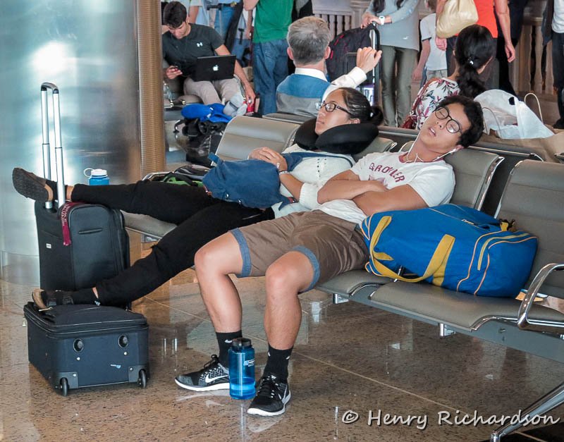 Tired travelers at the airport, Moscow, 2015