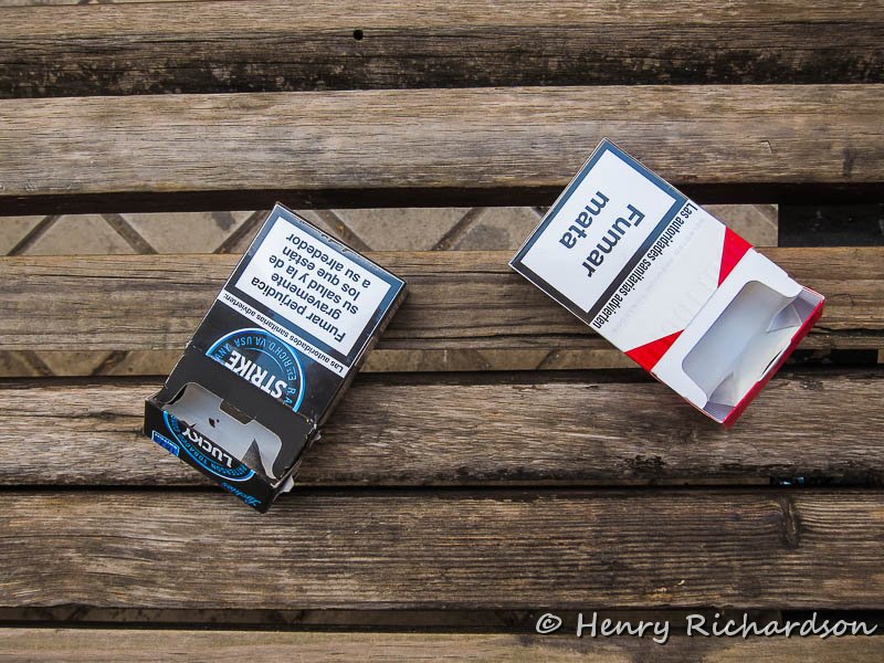 | Smokers in Granada leave their empty packs behind, 2015 |