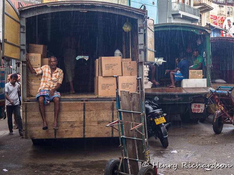 Working in the rain, Colombo, 2017