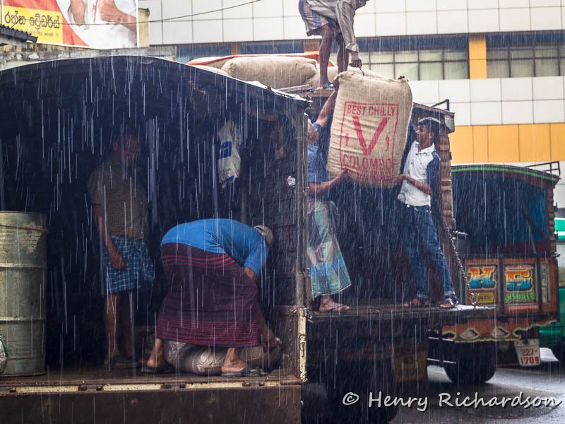 Working in the rain, Colombo, 2017
