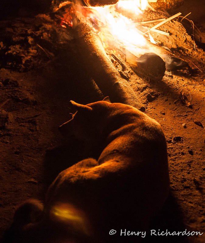 Campfire dog at night, 2006