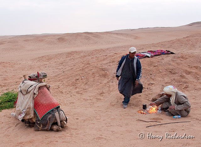 My camel driver makes some tea as we wait for sunset