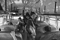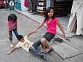 Climbing over the backs of the seats inside a "chicken bus"