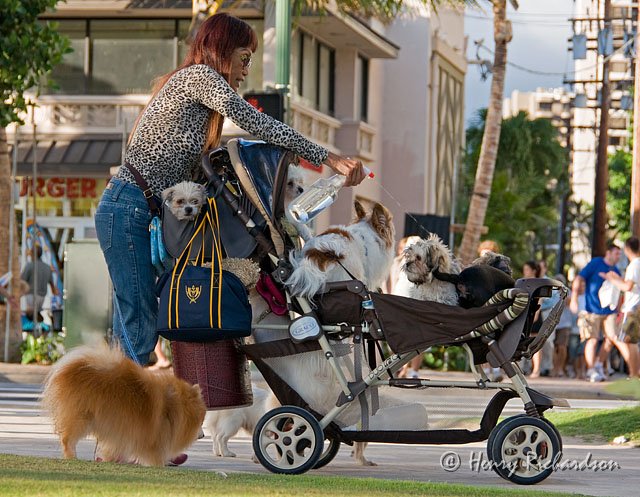 The Waikiki Dog Woman with 9 dogs