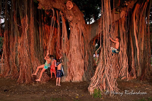 Banyan tree at sunset