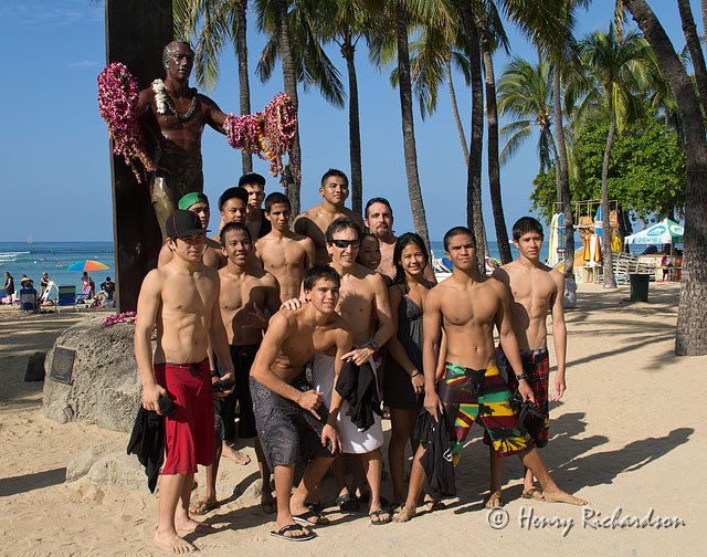 | Posing in front of the Duke Kahanamoku statue in Waikiki |