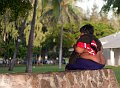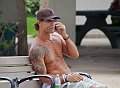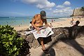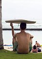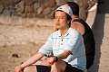 A very pooped tourist at the beach