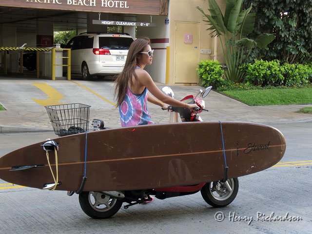 Heading to the beach with her surfboard
