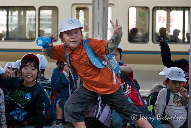 | Elementary school children on the train platform, Nara, 2009 |