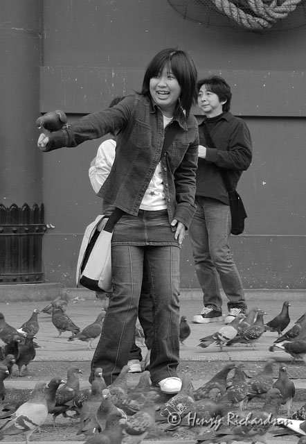Woman with pigeons at Senso-ji, Tokyo, 2003