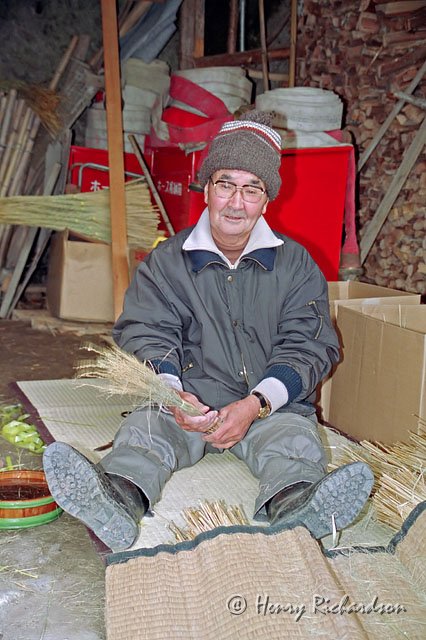 Man making a tatami mat in Matsushima, 1993