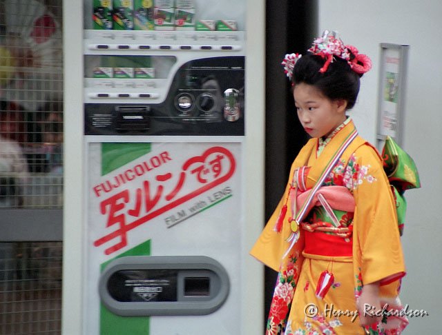 | Young girl in kimono with film machine during O-shogatsu, Tokyo, 1992 |