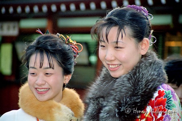 | Two young women in kimono during O-shogatsu at Senso-ji, Tokyo, 1993 |