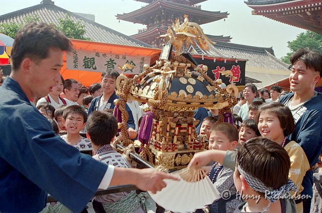 | Children carrying an o-mikoshi at a Senso-ji matsuri, Tokyo, 1991 |