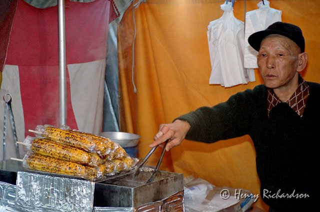 | Man selling roasted corn at a Senso-ji matsuri, Tokyo, 1997 |