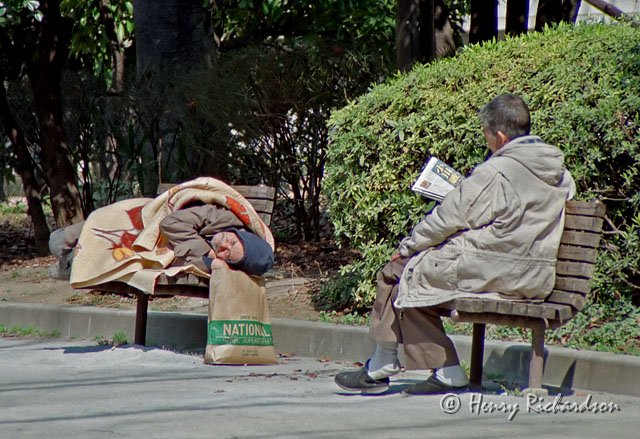 | Reading newspaper man and sleeping man, Tokyo, 1997 |